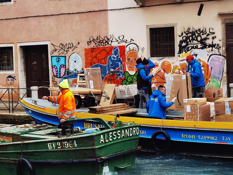 Hach, die alte Einhornmaske hätte fast mitgemusst. Ich hab mich beherrscht. Wenn das Hochwasser kommt, sprudelt es aus allen Gullys, Kanälen und selbst aus den Ritzen in den alten Gehwegplatten. Dann spült das Wasser die kleinen Fische mit hinaus auf die Gehwege. Warentransport/Paketdienst Supermarkt in einem alten Theater.