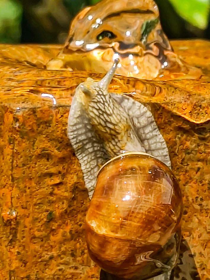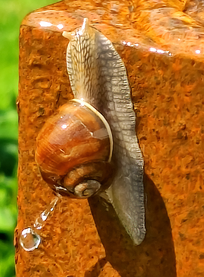 Diese Schnecke badet offensichtlich gern. Und sie ist nicht die einzige ihrer Art. Immer wieder machen sich diese Schnecken auf den mühsamen Aufstieg, ständig umspült von Wasser und Wellen.