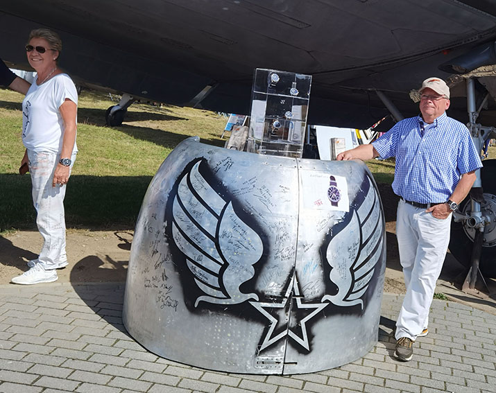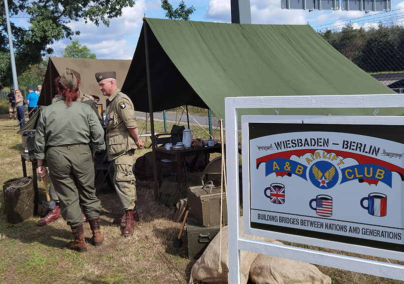 Zum einen ist für uns die Strecke dort hin ein angemessener Sonntags-Radelausflug mit einer tollen Waldstrecke. Zum anderen verkauft Schwager Leo, seines Zeichen Uhrmacher und Flieger, mit einer Uhrenmanufaktur „Zeitflügel“ eine extra zum Thema „Luftbrücke“ gestaltete Fliegeruhr. Also treffen wir Schwager und Schwester auf einen Schwatz. Lange Schlangen warten vor den alten „Rosinenbombern“, die neben dem zum Himmel strebenden Luftbrückensymbol die Attraktion dieses Denkmals sind.