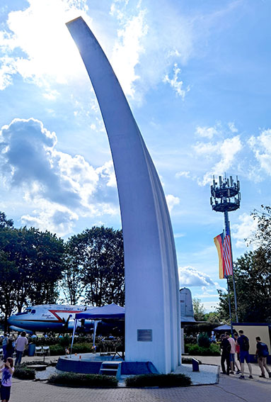 Zu erreichen ist das Denkmal nur über einen Fuß- und Radweg. Dieser überquert die Autobahn und lädt Flugzeugbeobachtungsfanatiker wie Familien ein, sich die wieder zahlreicher startenden Flugzeuge direkt über den Kopf rauschen zu lassen. Offenbar die Attraktion an diesem blitzblauen Spätsommer-Sonntag.