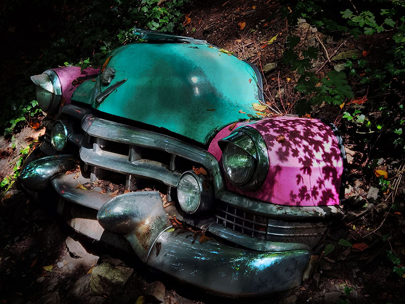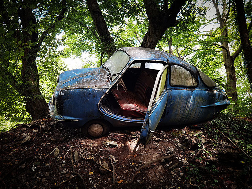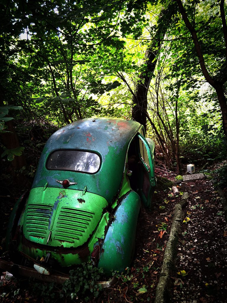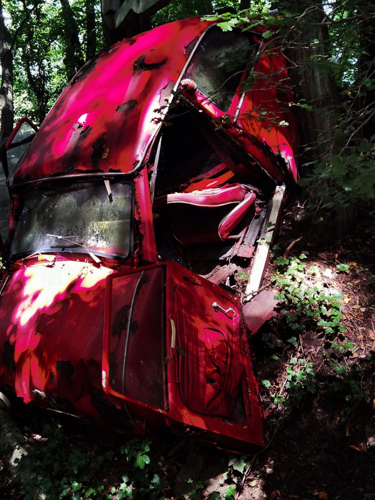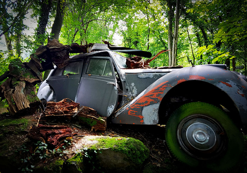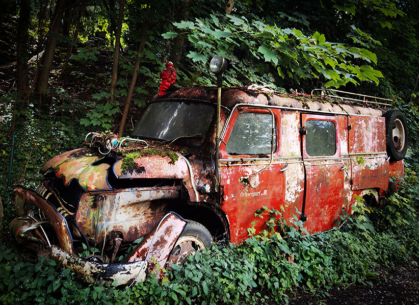 Wir nehmen den riesigen Hügel, auf dessen Spitze im Neandertal die Villa samt Pool sitzt und setzen die überflüssigen Autos dort aus. Und überlassen sie über Jahre und Jahrzehnte der Natur. Das Ergebnis müsst ihr euch einfach ansehen. Kommt gleich.