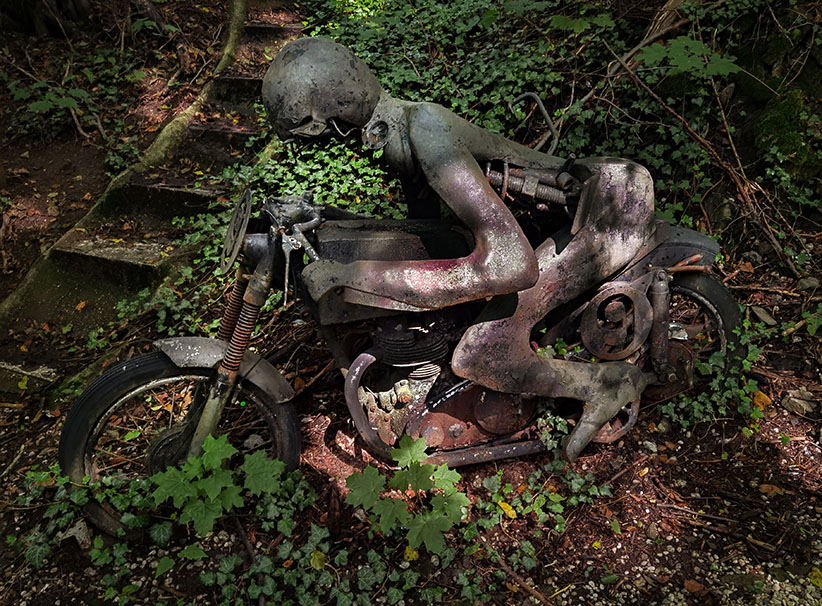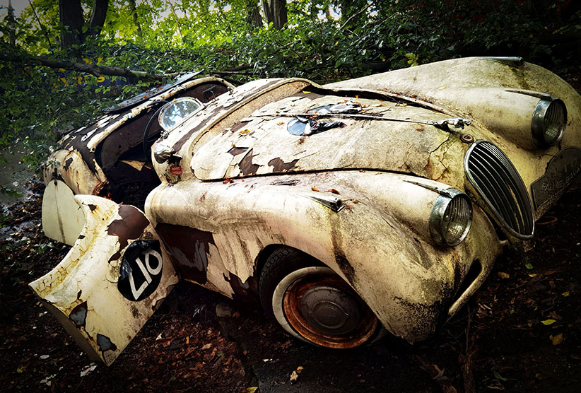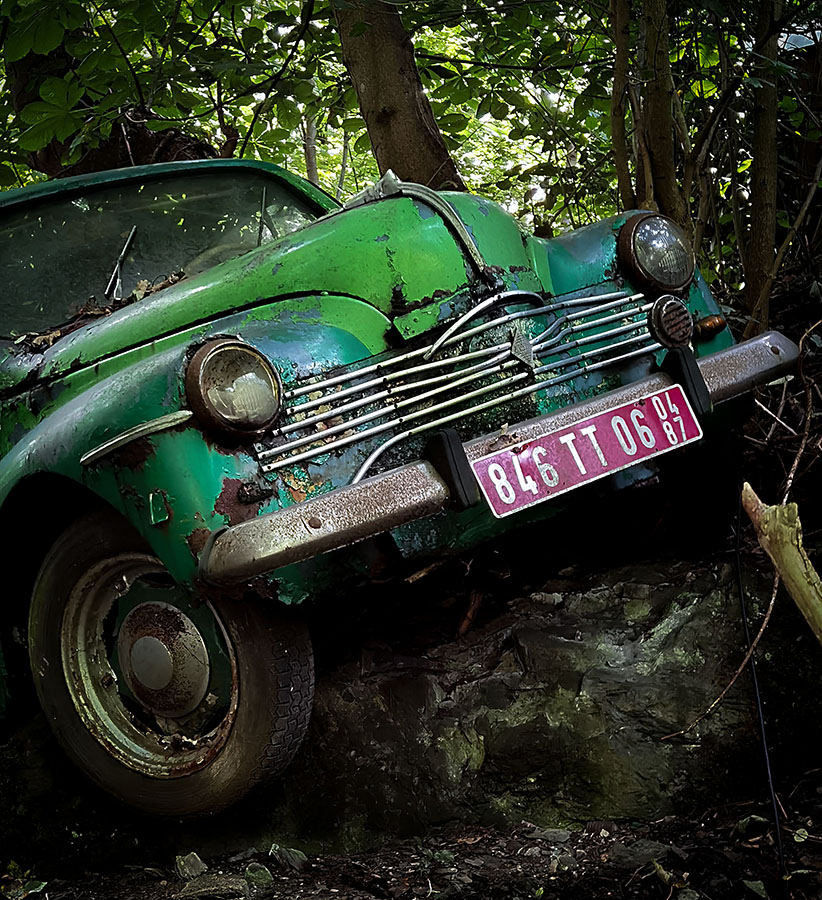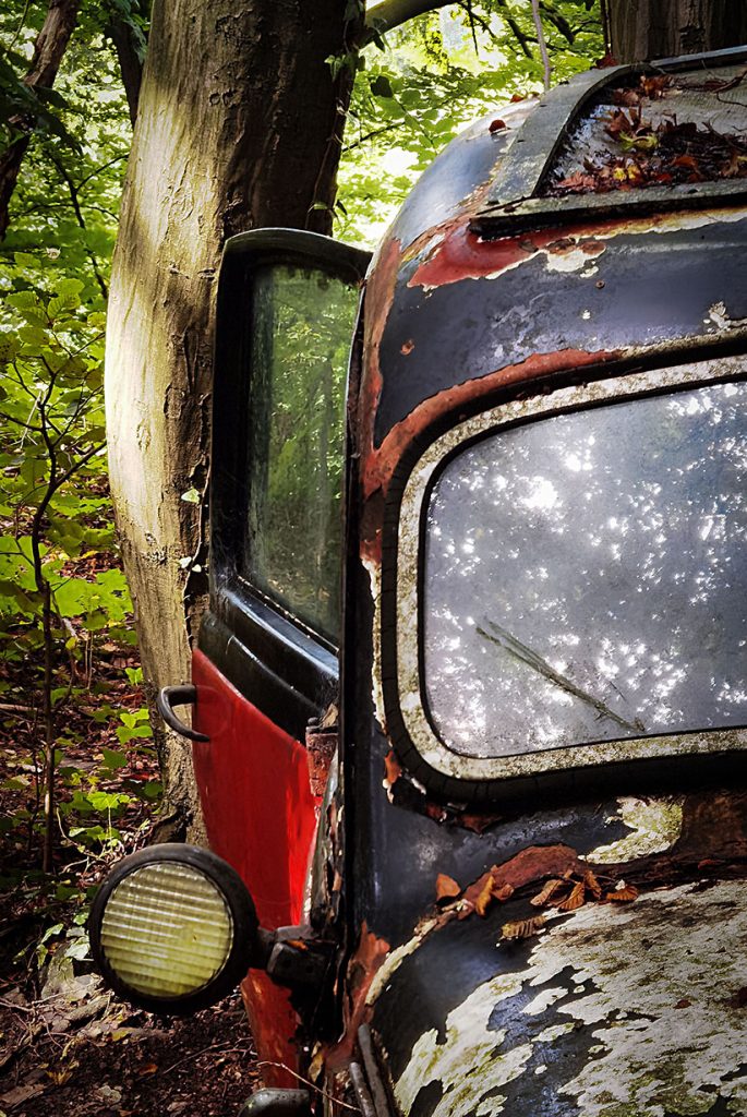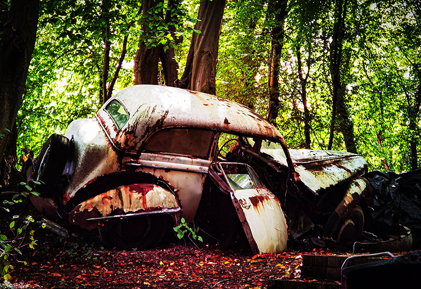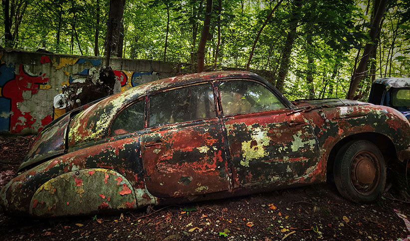 Wir nehmen den riesigen Hügel, auf dessen Spitze im Neandertal die Villa samt Pool sitzt und setzen die überflüssigen Autos dort aus. Und überlassen sie über Jahre und Jahrzehnte der Natur. Das Ergebnis müsst ihr euch einfach ansehen. Kommt gleich.