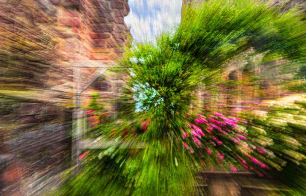 Noch ein Motiv von der Burg. Um die Ruine herum wird ein großer Rosengarten liebevoll gepflegt.