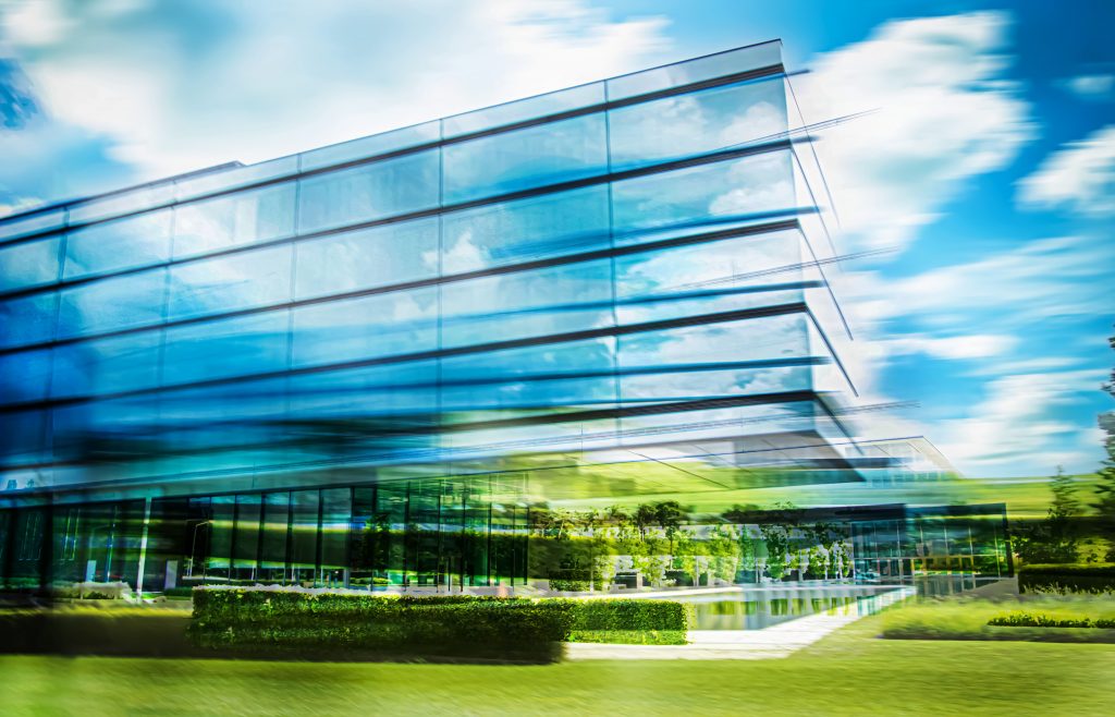 Noch ein Architektur-Motiv. Die Zentrale der Musterhaus Küchen fasziniert durch das freischwebende Gebäudeende, unter dem ein Wasserbecken wiederum den hängenden Teil des Gebäudes spiegelt. Alles ist hier aus Glas, auch im Inneren, und spiegelt den Himmel, die Grünanlagen und immer wieder das Gebäude in sich selbst.