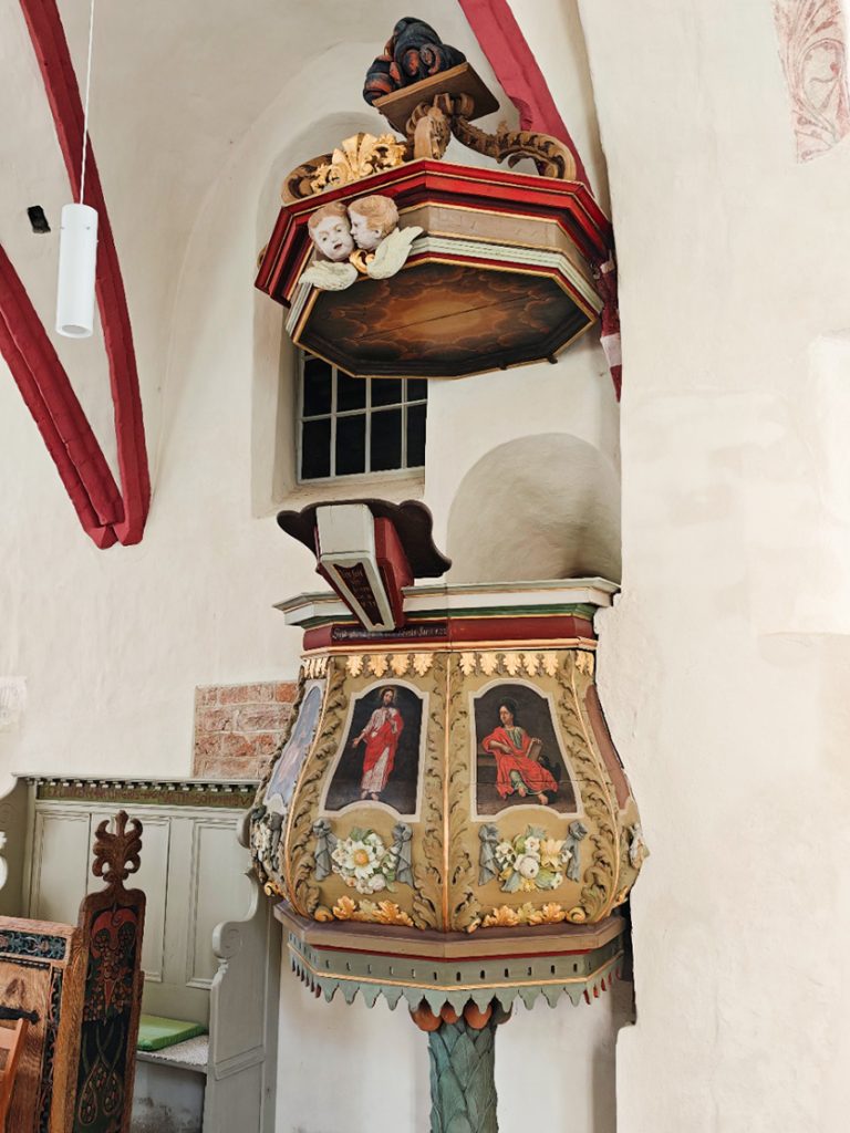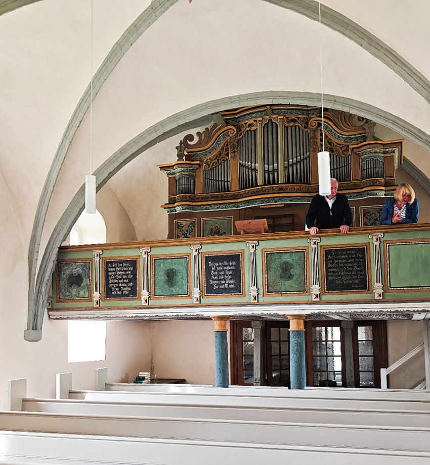 Hier sind praktisch alle Kirchen evangelisch. Evangelische Kirchen sind im Gegensatz zu katholischen sowieso meist verschlossen. Hier ganz besonders. Man hütet die Schätze und denkmalgeschützten Kunstwerke im Innern. Von Bildern, Statuen, Altären berühmter Altarbauer bis hin zu historischen Orgeln. Stöbern im Netz zeigt, dass die Ausstattung sehr unterschiedlich ist, ebenso die Anzahl der geretteten Gegenstände und der Stil der Innenrestaurierung. Ich konnte nur in eine von ihnen hinein schauen. Dort war eine Taufvorbereitung im Gang. Ich wurde vom Pastor mit Handschlag begrüßt und sofort boten mir mehrere Leute an, mich herumzuführen.