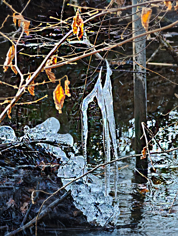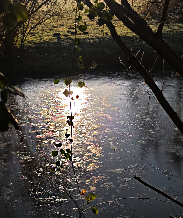 Ein Hauch Sonne zaubert ein Glitzern aufs Eis. Ansonsten liegt alles da draußen in tiefem Schlaf.