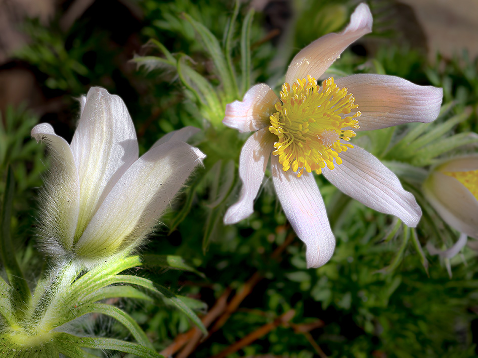 Dies ist eine kleine Hommage an eine meiner Lieblingsblumen: die Kuhschelle, Pulsatilla. Mich faszinieren ihre Zartheit und ihre feine Behaarung. Ihrem zarten Aussehen entgegen hält sie sich wacker auf trockenen. mageren Böden, in Steingärten zum Beispiel. In der freien Natur ist sie sehr selten geworden und steht unter Naturschutz.