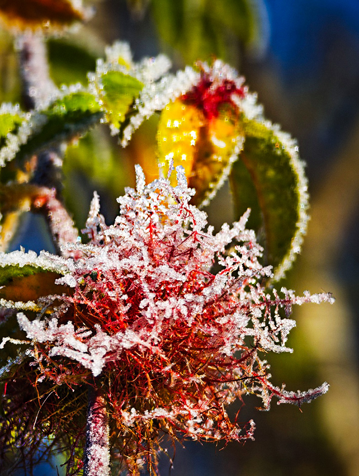 Nichts ist für immer. Man möchte jede Sekunde dieser Pracht voll auskosten. Die Welt um mich herum hat sich in einen vielfarbig glitzernden, wehrhaft ausschauenden Igel verwandelt. Nicht für lange. Für die Nacht sind Regen und Glatteis angesagt.