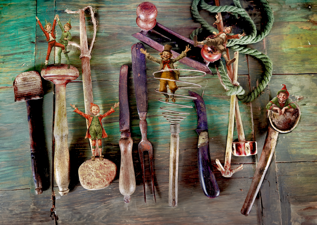 Gestern habe ich ein Studiofoto von meinen wirklich alten Küchengeräten gemacht. Irgendwie fiel mir dann die Geschichte mit den Heinzelmännchen ein, die in meiner Kindheit oft erzählt wurde, wenn in der Wohnung etwas Unerklärliches passierte. Und Heinzelmännchen sind doch wie Weihnachtswichtel?