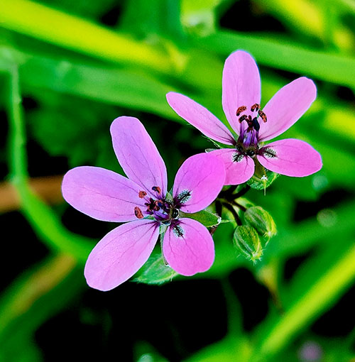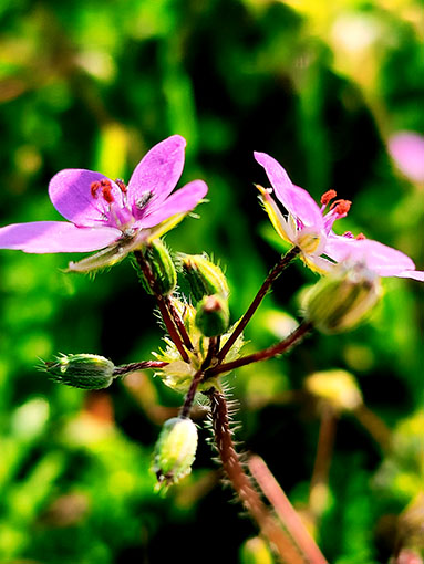 Frisch erblüht ist auch der Reiherschnabel, der in wenigen Tagen die Wiesenränder übersät hat.