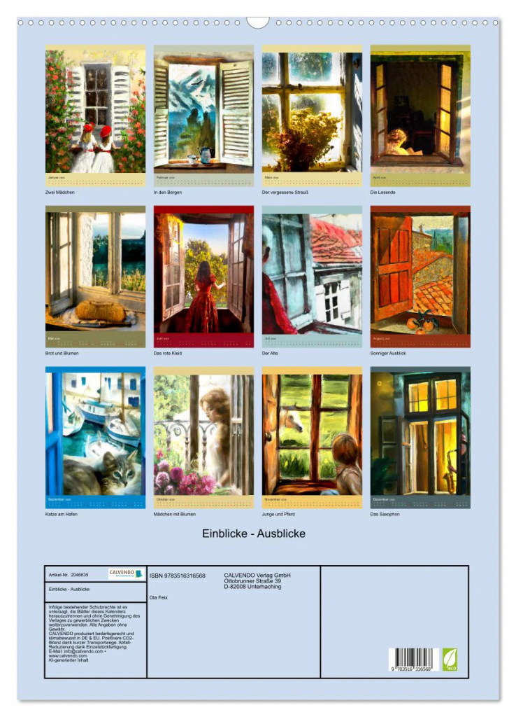 In unserem Wohnzimmer wird nächstes Jahr der „Einblicke – Ausblicke“ Kalender hängen: Impressionistische Fensterwelten. Das Saxophon Motiv wurde schon oft als Leinwandbild verkauft.