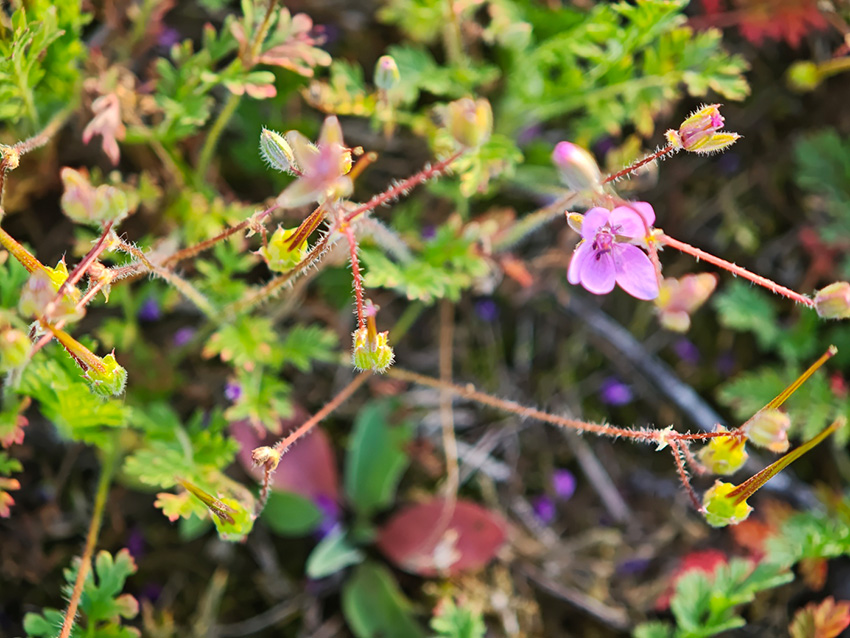 Reiherschnabel, er überzieht manche Wiesen mit violettem Schimmer, so dicht an dicht wächst diese niedrigen Pflanze