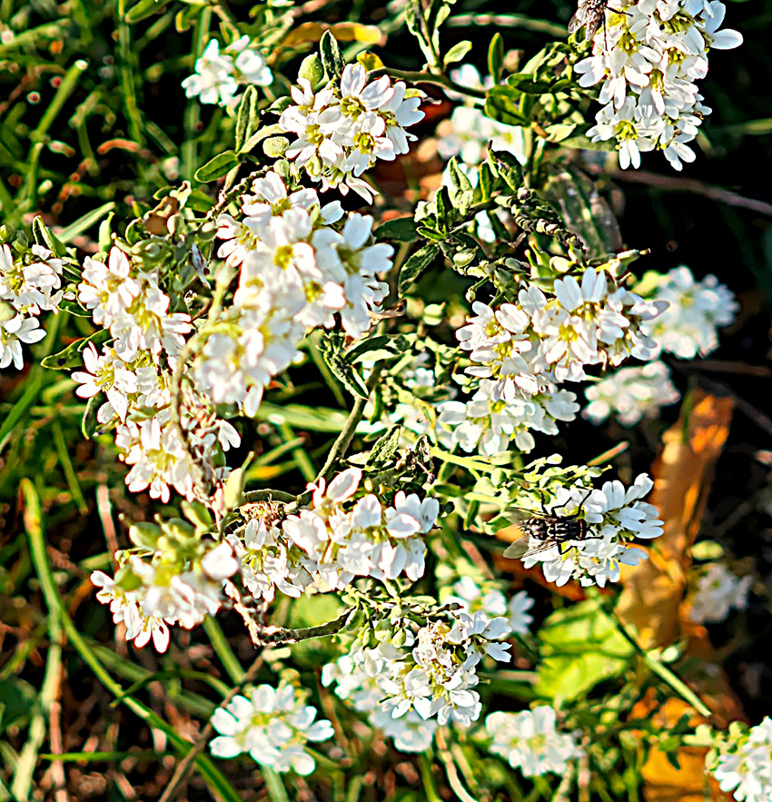 14 blühende Pflanzen oder bunte Samen tragende plus drei Insekten. In der nächsten Woche lief ich den Kilometer entlang einer heimischen Wiese und kam auf 8 noch blühende Pflanzenarten und null Insekten. Definitiv zu dieser Jahreszeit 1:0 für die Sandwiese.
