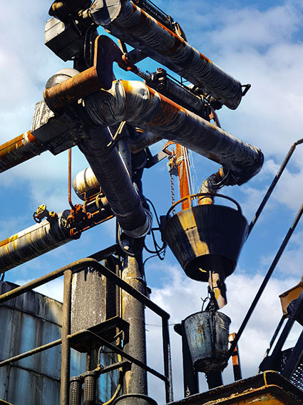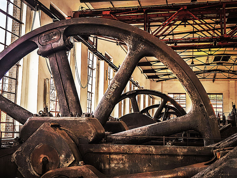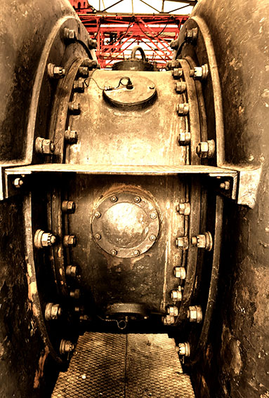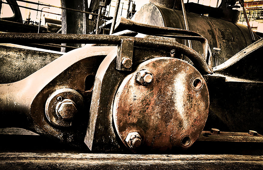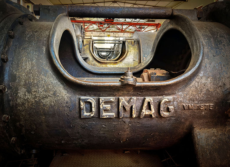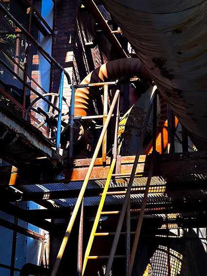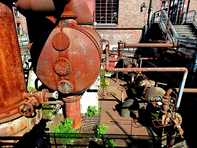 Aber das ist ungeheuer schwer. So schwer, dass man monströse Maschinen dafür braucht. An manchen von denen hätte Alienschöpfer Giger sicher seine Freude gehabt. Alles an einer Kokerei ist groß und schwer. Gigantisch. So wie manngroße Schraubenschlüssel. Kilometerlange, gigantische Rohrsysteme. Förderanlagen, die Kilometer überspannen. Der Mensch in dieser Anlage: eine Maus mit Helm.