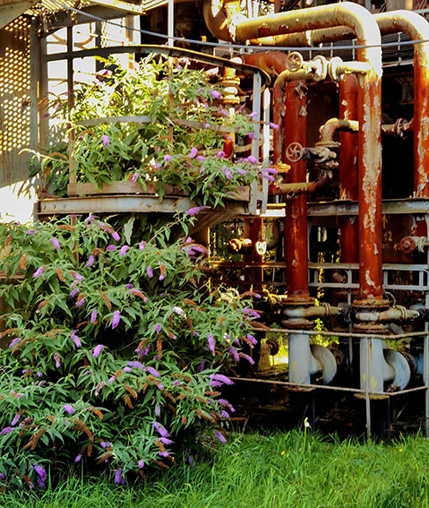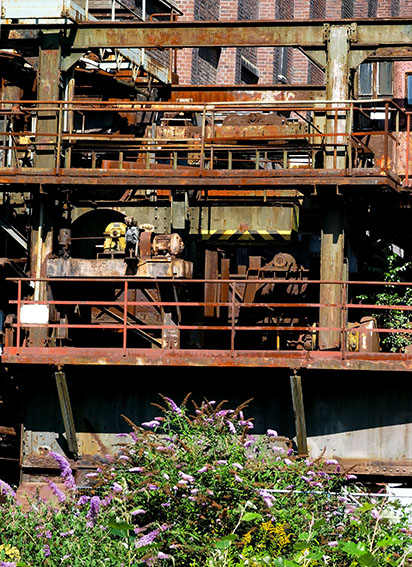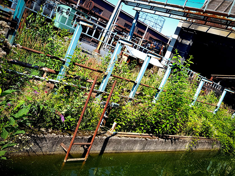 Das muss reichen an als Einblick. Die Kokerei ist heute ein Industriedenkmal, das die Natur langsam übernimmt. Im Wasser unter den vom Holz entkleideten Kühltürmen schwimmen Seerosen und Kois. Ein Spaziergang durch die Anlage lässt nur noch mit Fantasie erahnen, was für eine Atmosphäre, was für eine Geräuschkulisse dort geherrscht haben mag.