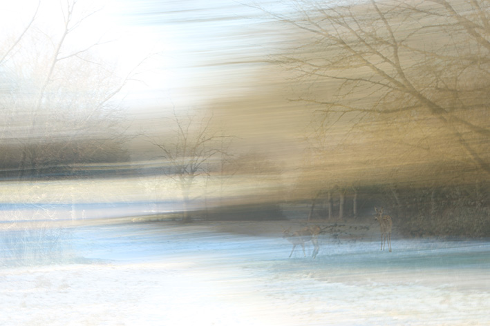 Wintersonntagssonne und ein bisschen Schnee und zwei Reh